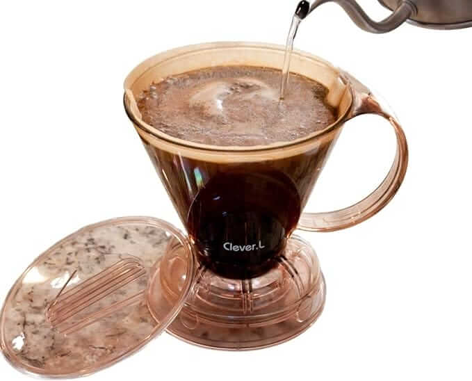El gotero o filtro de cafe Clever combina las mejores características de la prensa francesa y el filtro de goteo para la elaboración de una excelente taza de café con cuerpo y sin sedimentos.