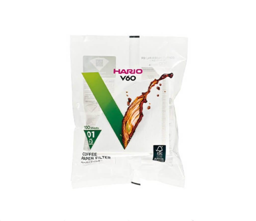 100 filtros de papel cónicos para elaboración de café en forma manual con gotero o dripper Hario 01.