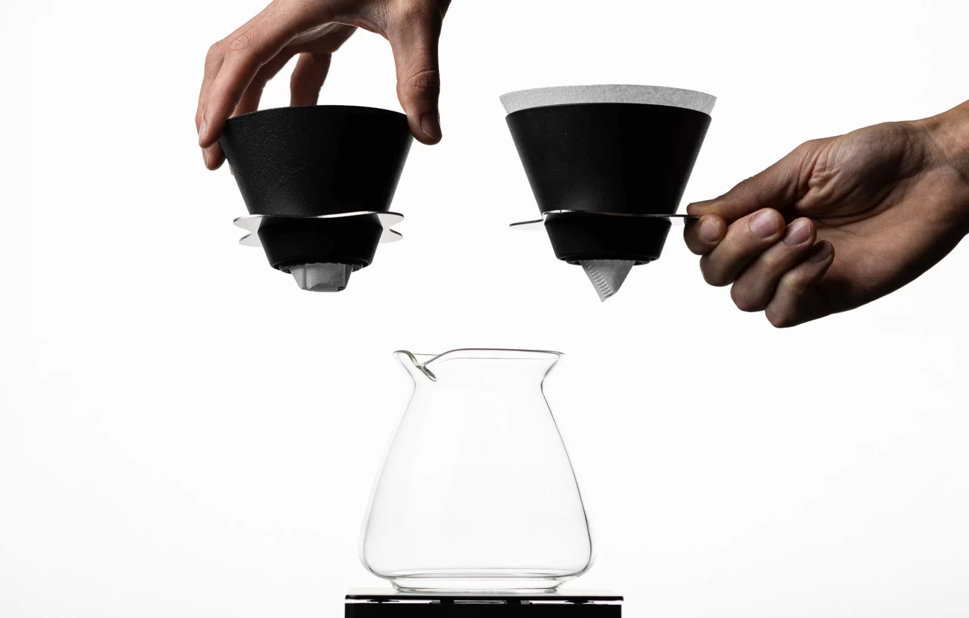 Por supuesto, los resultados dependen en gran medida de la técnica, el fondos elegido, el papel y la molienda.4 cafeteras en 1. La Orea V4 incluye bases de 3 fondo plano, y un fondo APEX – la versión «cónica».